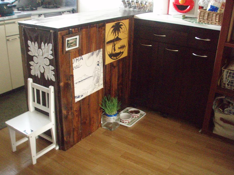 作ったカウンターですが、ゴミ箱はガスコンロの前においてた。