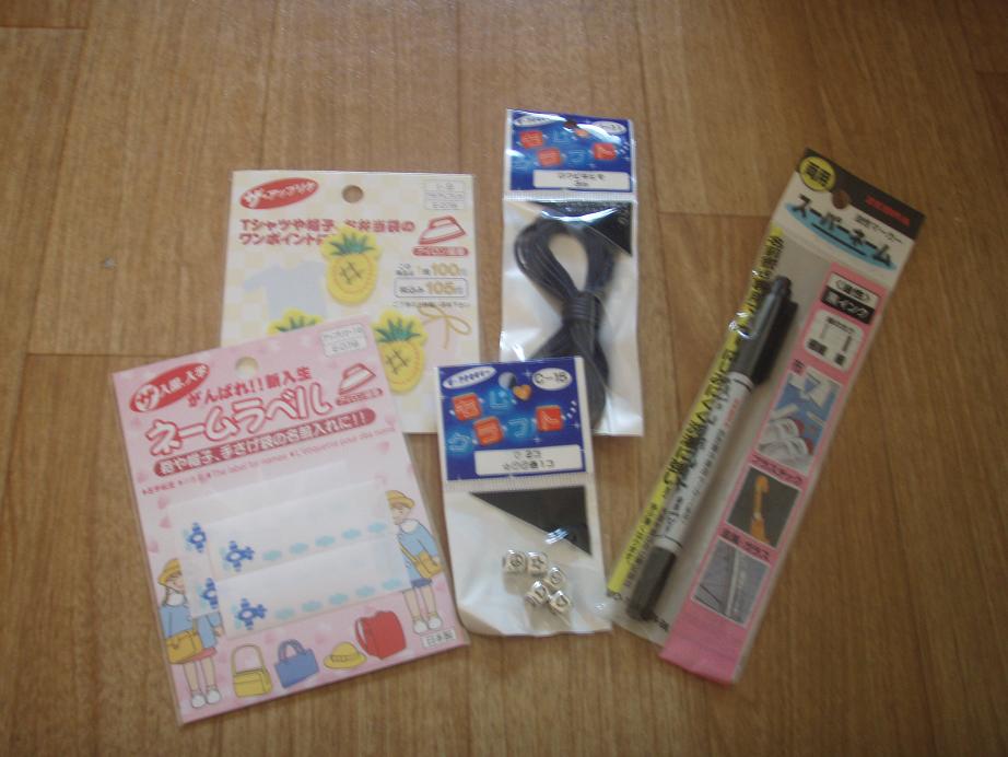 ちょーどインクが切れ掛かってるから(3年間おちかれー)名前ペンとアップリケ・ネームラベル・アクセサリーの紐とか・・・