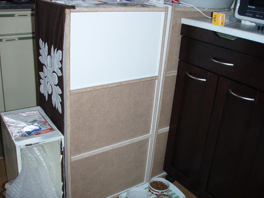 カラボの上にそのまま板に乗せてベニヤ板を囲んでおしまい。にしょうかにゃ。。。??